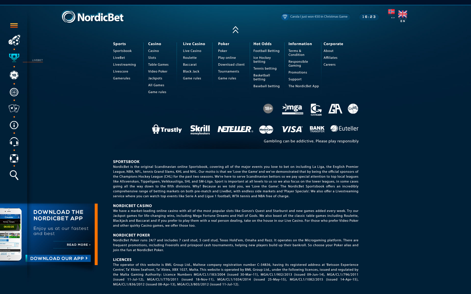 Test project for a betting company
